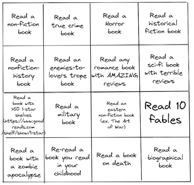 Here's an example of a checklist you could use if you wanted to expose yourself to new genres and read 16 books: